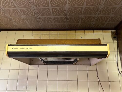 既設のレンジフードはNational(ナショナル)製のもので、おおよそ20年前に設置されたそうです。