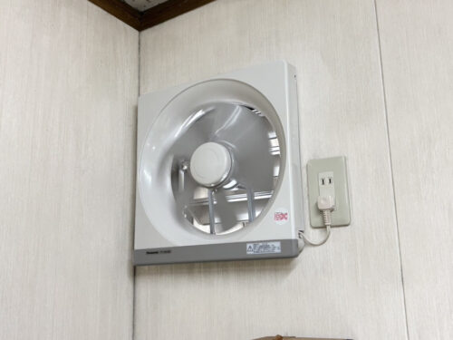 今回の電気工事では、既存換気扇を安全に取り外した後、Panasonic製の新品換気扇へ交換しました。